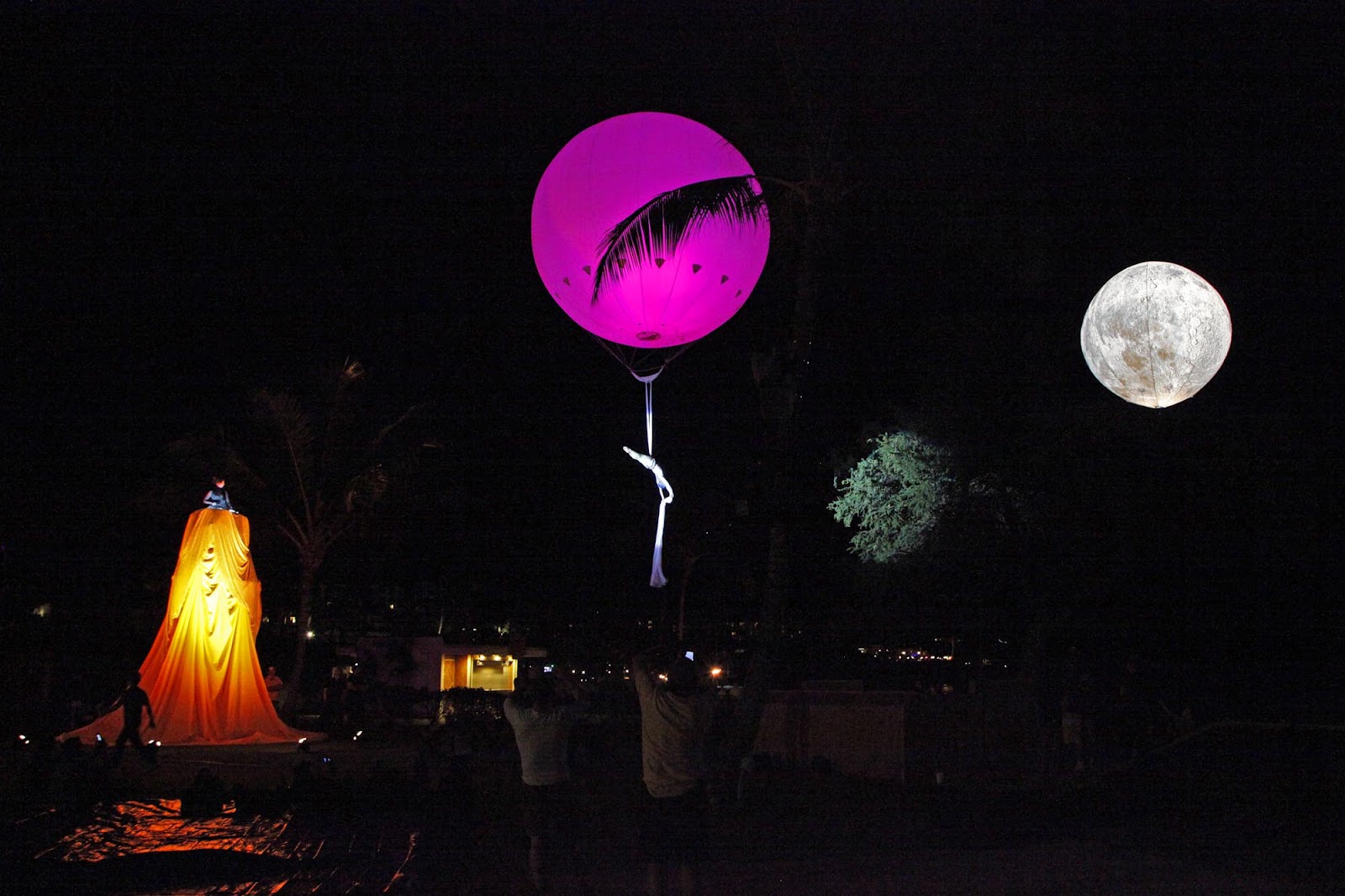 I was invited to perform the Heliosphere at the Mobile World Congress 2012 in Barcelona by Paraddax. I performed 6 shows in total over 2 days as part of The Dream Engine. The show was alongside a water and light display at the giant fountain in front of the Catalan National Art Museum. The show took place during "Networking at Moonlight" followed by a set performed by DJ ISIS.